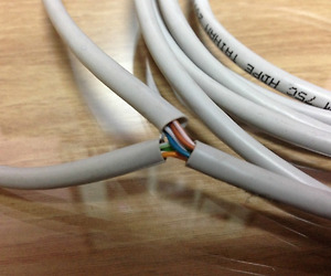 기존에 묻혀있던 케이블은 CAT5짜리 묻지마 UTP로 꽤 연식이 오래 돼 보이는 케이블이다. 기존 라인을 과감하게 절단하고 피복을 벗겨댄 뒤, 케이블 CAT5e 2개 라인을 연결한다. 중간에 끊어지지 않도록 잘 묶고 전기테이프로 감싼다. 그리고 반대쪽 방에서 당겨준다. 물론 가능하다면 당기는 동안 누군가 케이블을 잘 잡아주어 꼬이지 않도록 해 준다. 더불어 전화선의 절반도 뽑아준다. (나머지 절반은 혹시 나중에 필요할 수 있으므로)